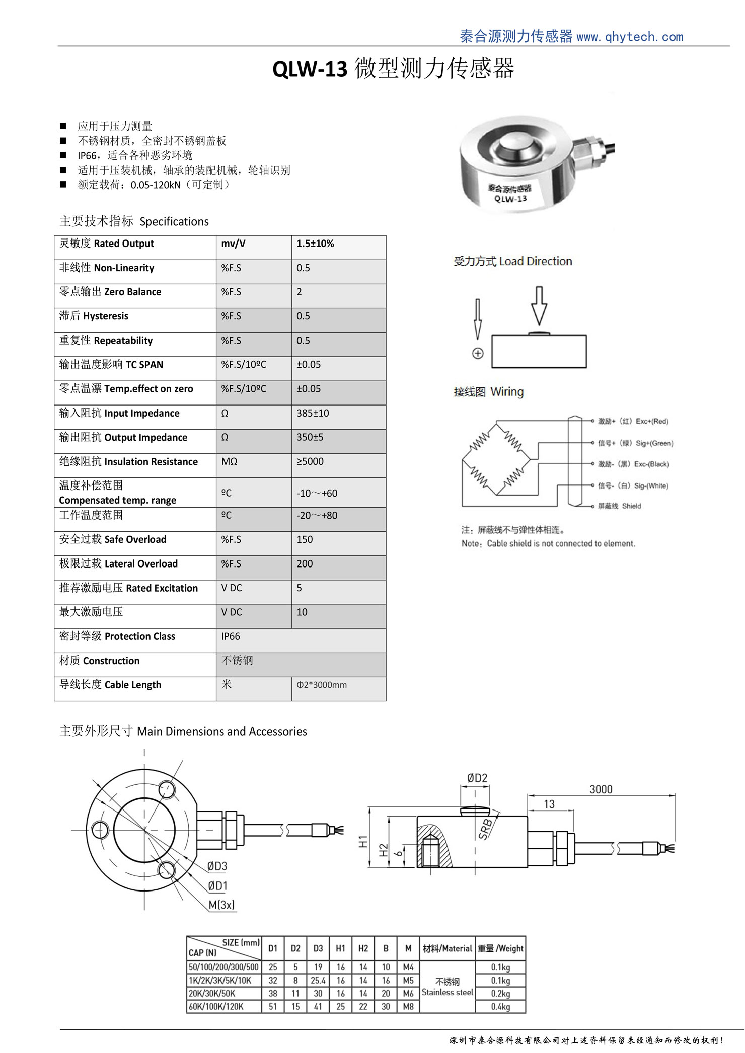 產品名稱:QLW-13小空間微型測力傳感器(0.05-120kN),φ25mm
