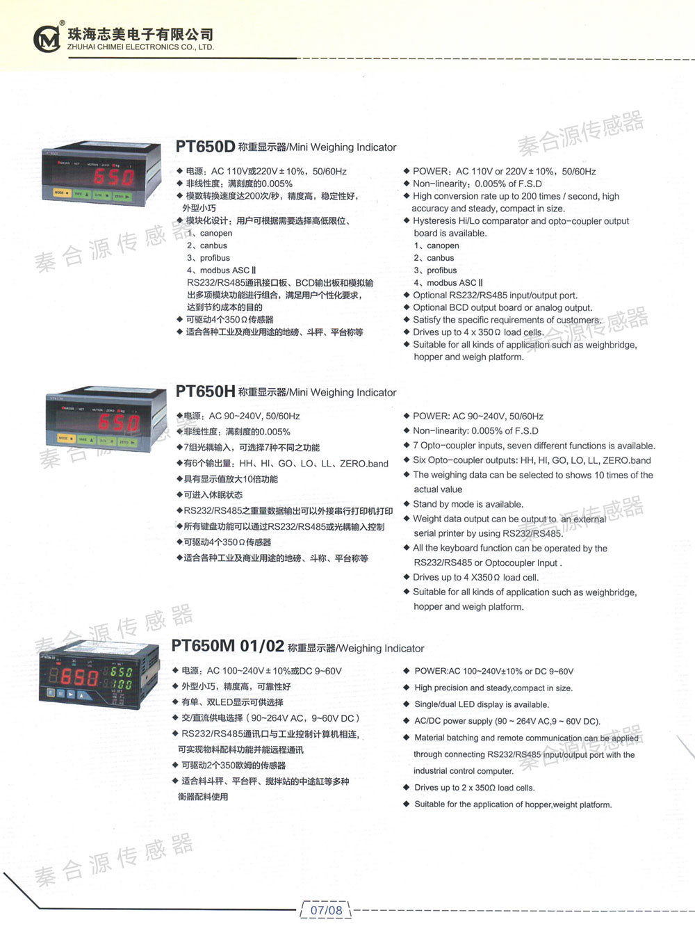 產(chǎn)品名稱:志美CHIMEI稱重儀表PT650D
