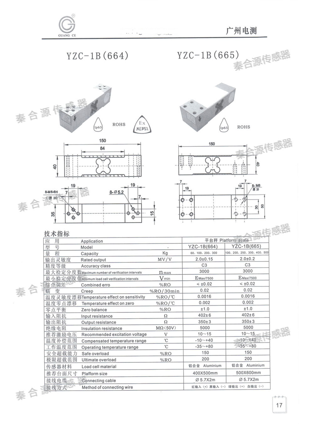 廣測傳感器YZC-664/665(60-500kg)