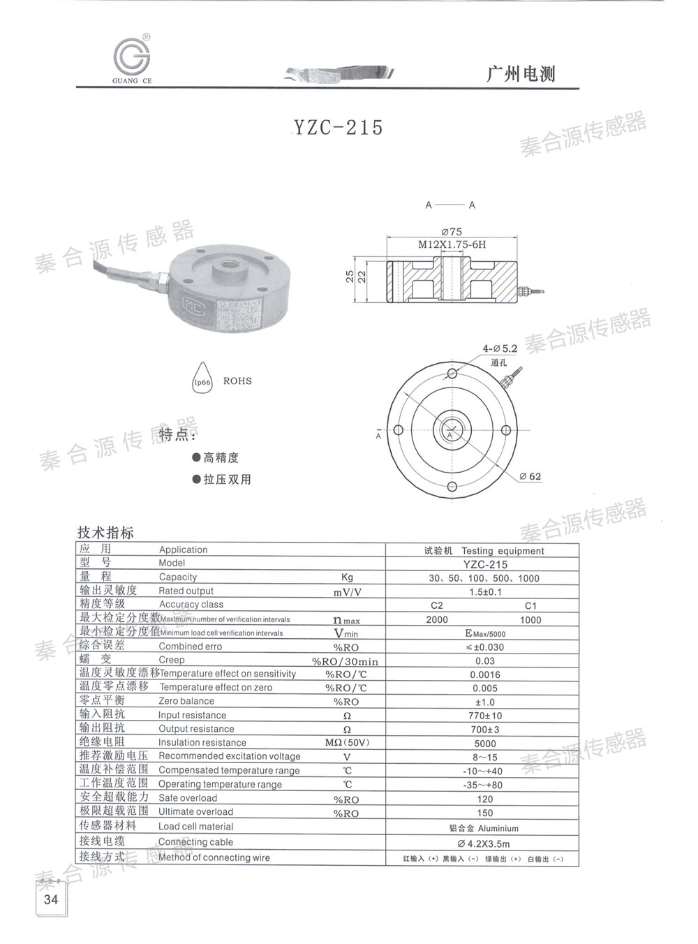 廣測(cè)輪輻式傳感器YZD-215(30-1000kg)