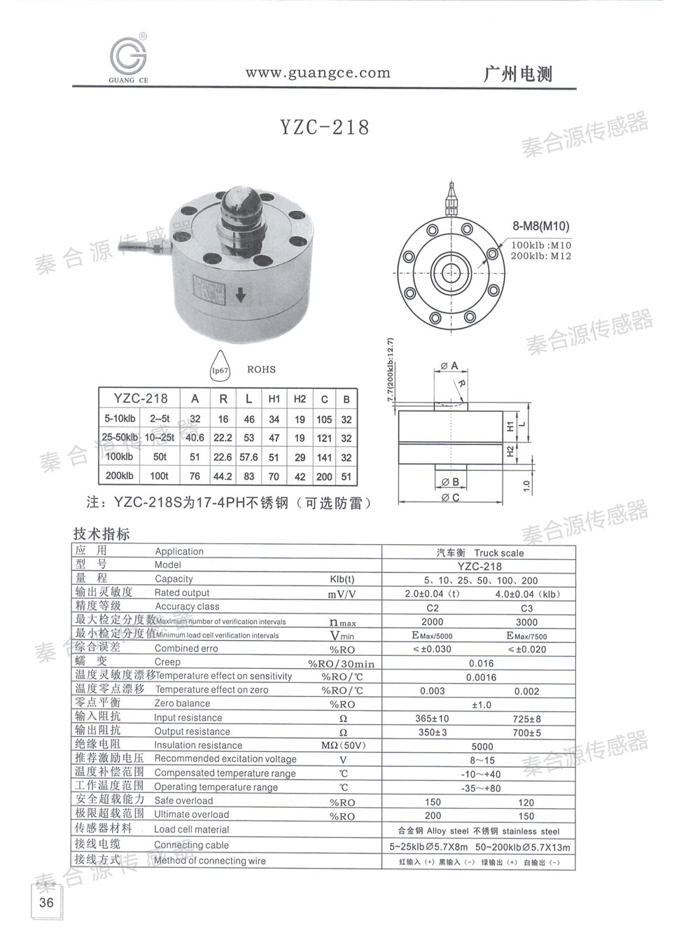 產品名稱:廣測稱重傳感器YZC-218(5-200Klb)