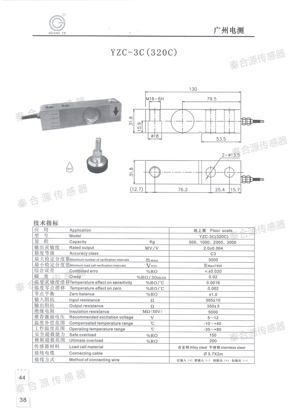 產品名稱:廣測臺秤傳感器YZC-320C(0.5-3T)