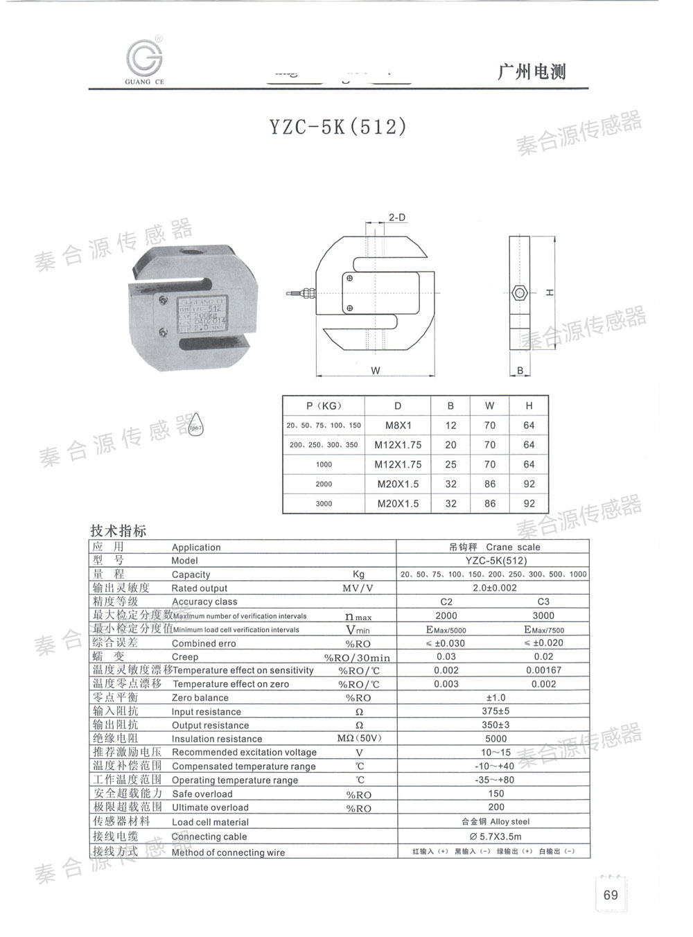 廣測S型稱重傳感器YZC-512 (20-1000kg)