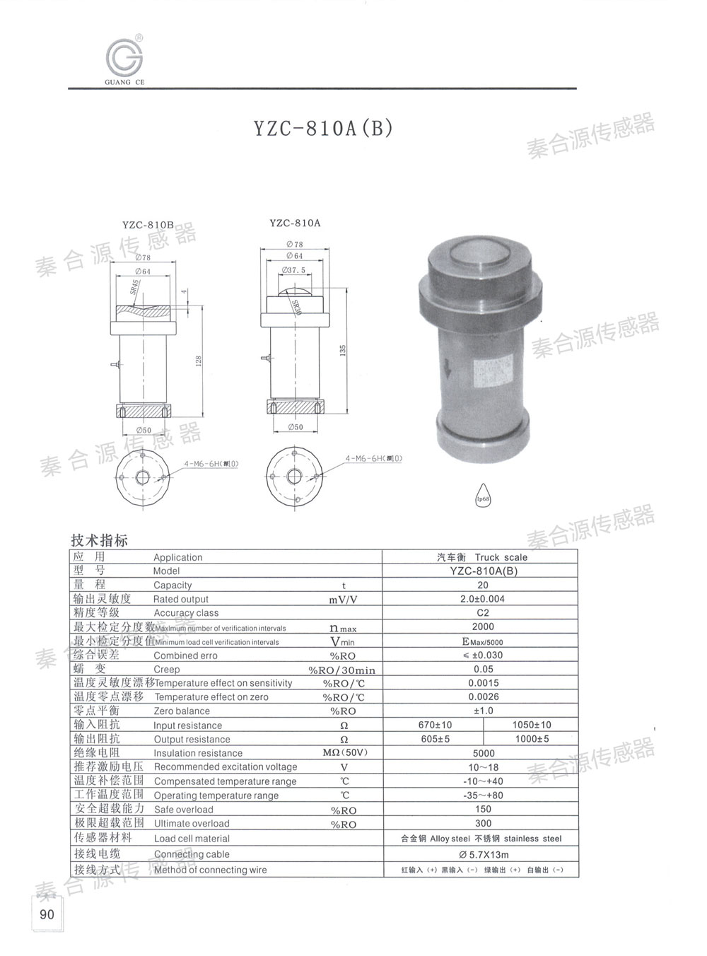 產品名稱:廣測筒柱式稱重傳感器YZC-810A(20T)