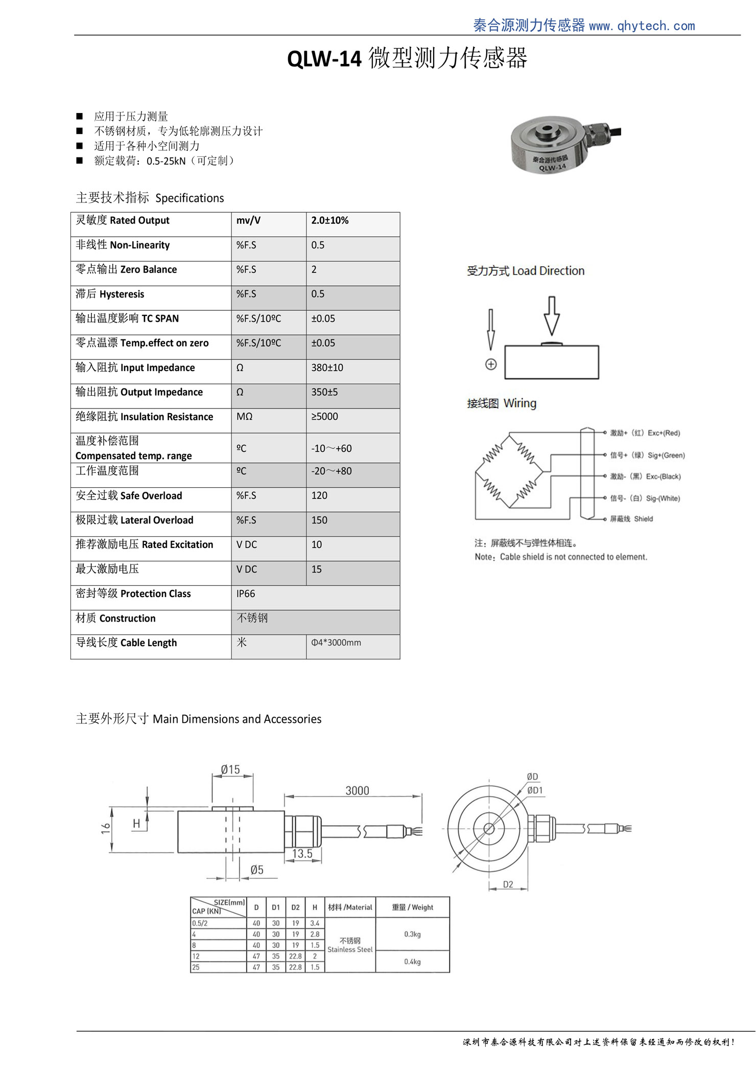 產品特點: 不銹鋼材質,專為低輪廓測壓力設計,適用于各種小空間測力