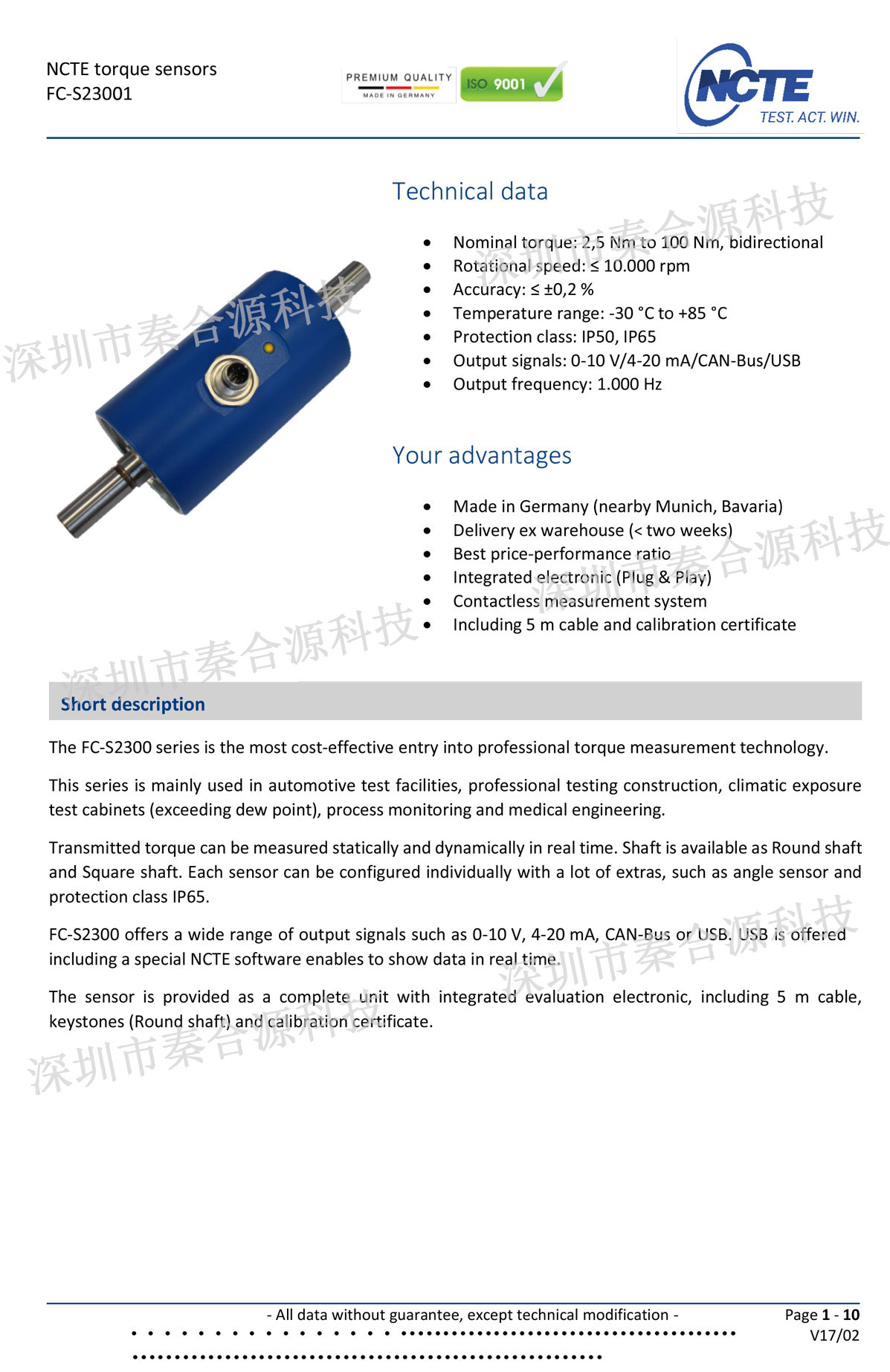 產(chǎn)品名稱:NCTE S2300動態(tài)扭矩傳感器10000轉高轉速扭矩