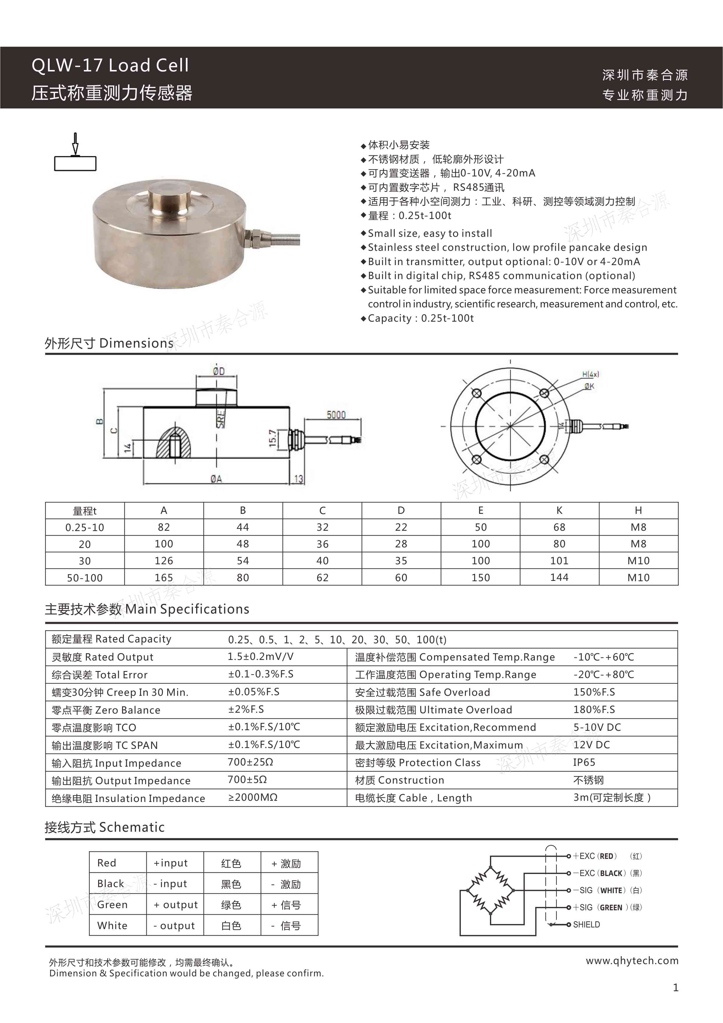 產品特點: 選用優質不銹鋼材料、產品外形低抗偏載力強,便于安裝、精度高、性能穩定;