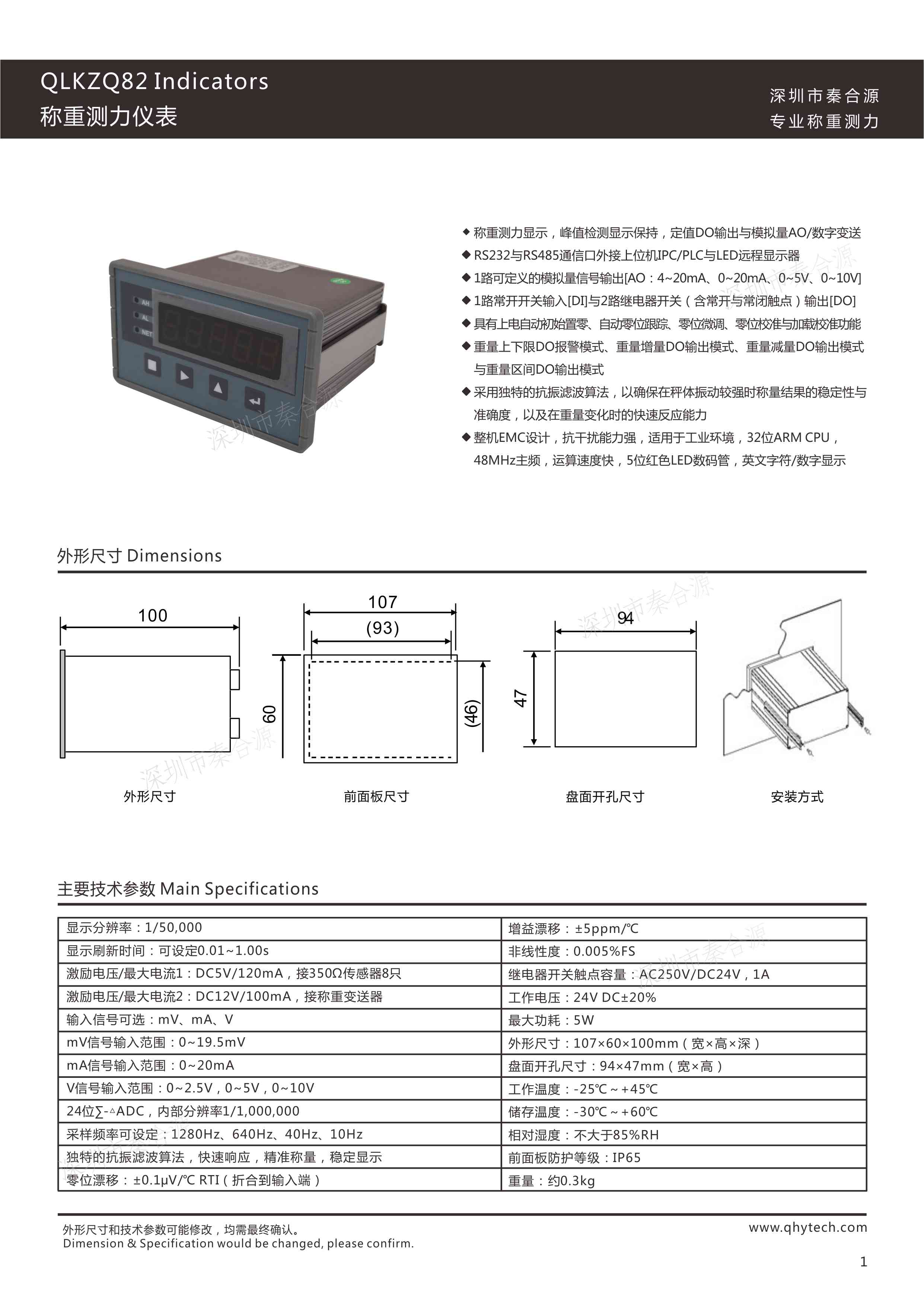 QLKZQ82稱重測力儀表: