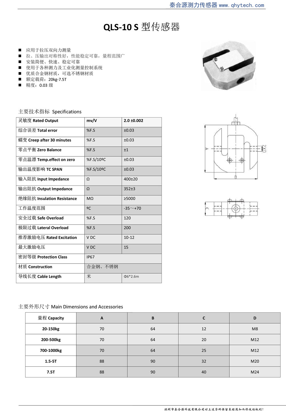 產品特點: 高精度拉壓力傳感器,S型結構,高品質